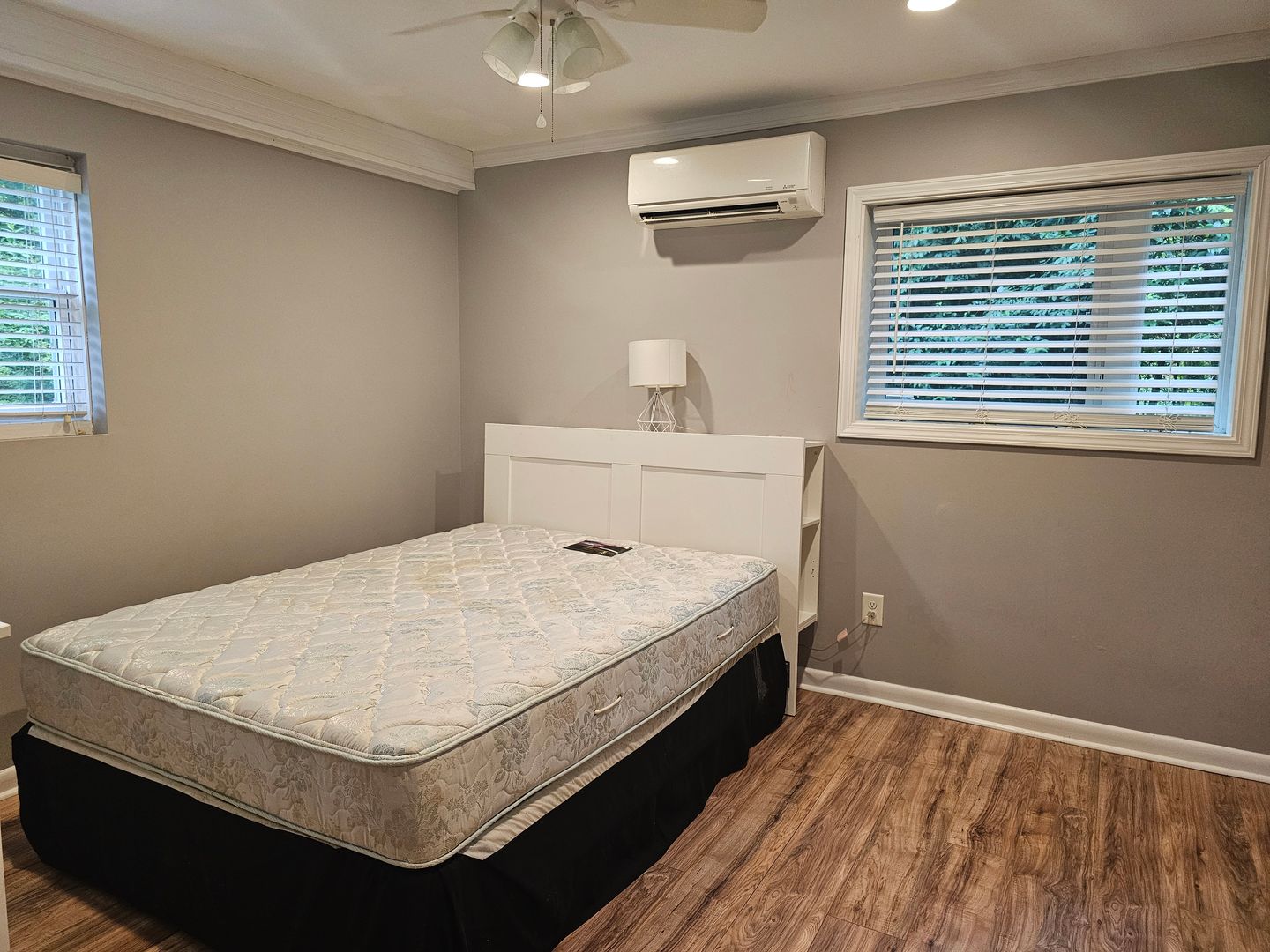 A private house with a separate walk-out basement with your own private entrance. All utilities, including Wi-Fi are included. Over 800 sf, this fully furnished apartment has a bedroom, kitchen, living room, and utility room. Separate HVAC system so you control the temperature of the apartment. The private apartment is on the ground level at the back of the house. You have a private entrance, a covered porch with a table, and a private backyard.